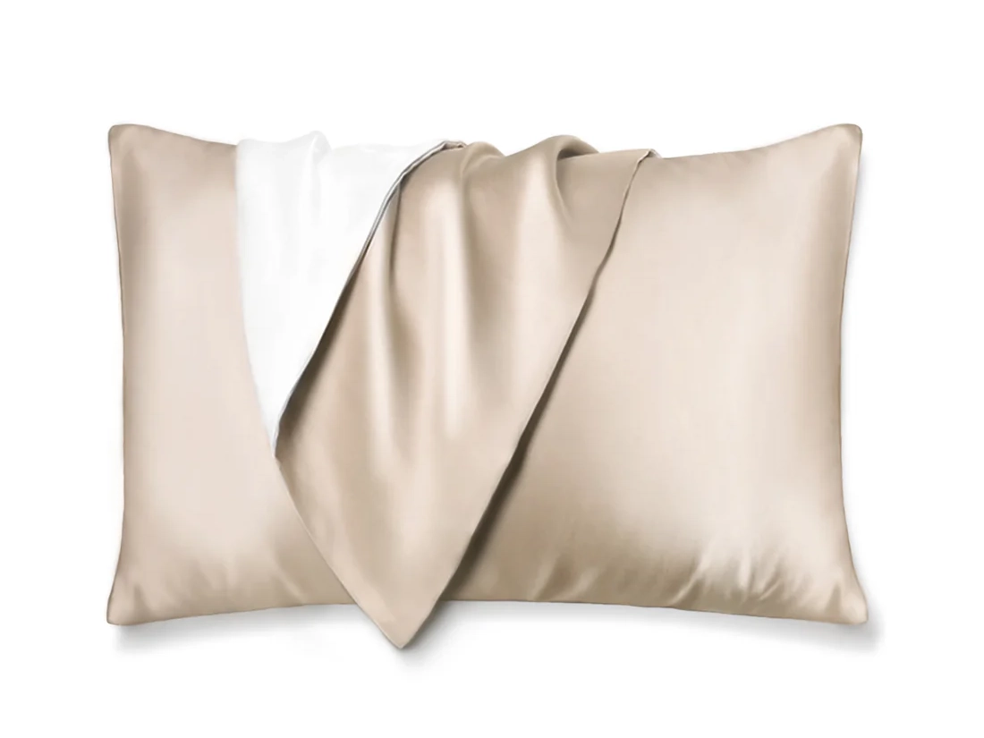 シルクは天然のたんぱく質繊維で、肌とほとんど同じアミノ酸で構成されているので、肌との親和性が高いのが特徴です。そのため、髪や肌への負担が少なく、寝ている間も心地よく過ごせます。さらに、保温性や通気性にも優れていて、夏はひんやり、冬は暖かく保ってくれる素材。寝具として直接肌に触れることで、眠るときの快適さを整えてくれるという優れもの。