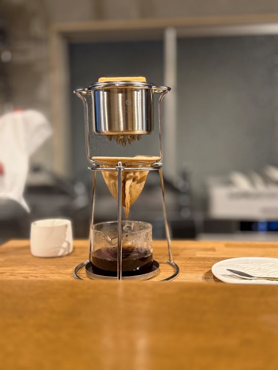 会話中には、大治さんがデザインしたというネルドリップブリュワー「ねるっこ」で岸さんが入れたコーヒーを美味しくいただきました。ネルドリップの味わいはもちろんのこと、コーヒーができるまでに聞いた大治さんの「ねるっこデザイン秘話」もとても貴重な体験でした。
