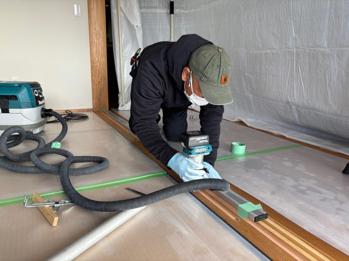 OB様のお住まいにて、和室の障子の引き勝手を変える工事を大工さんと伺いました。