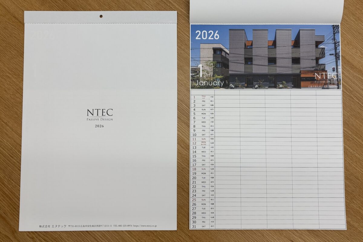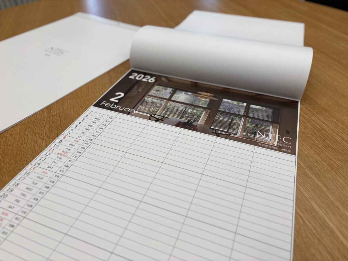 印刷が完了し、事務所に届きましたので「エヌテックカレンダー2026」をご紹介いたします。