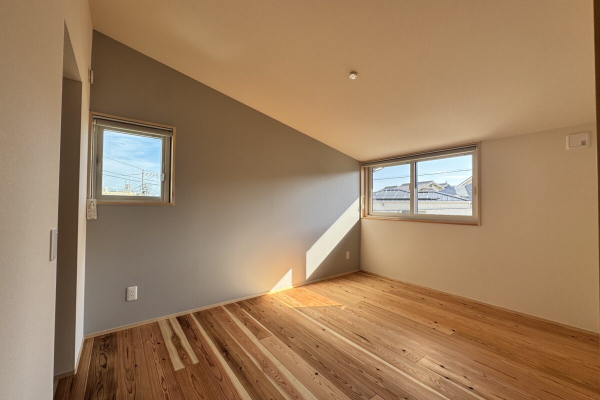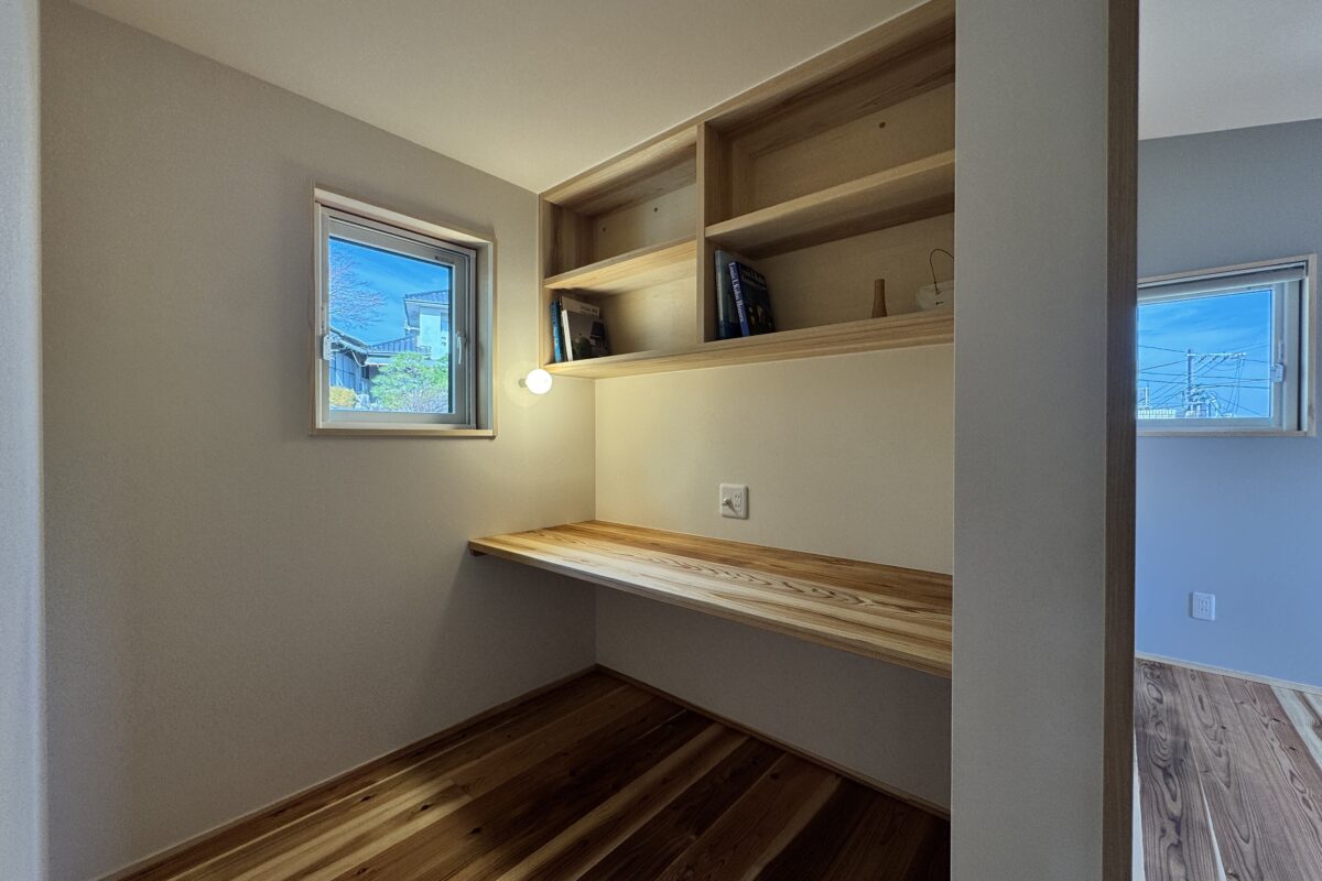 2階には個室が3部屋とウォークインクローゼット、書斎、トイレを配置。