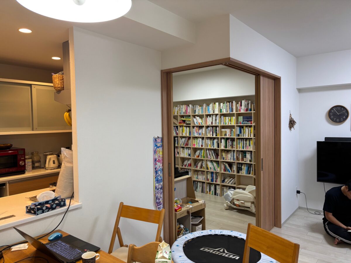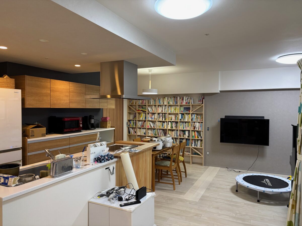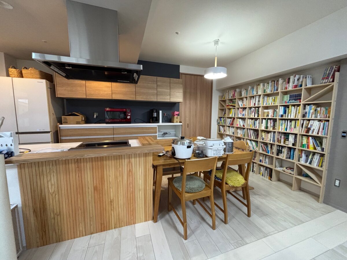 仕上がりと、お客様が設置されていた本棚がアクセントとなり