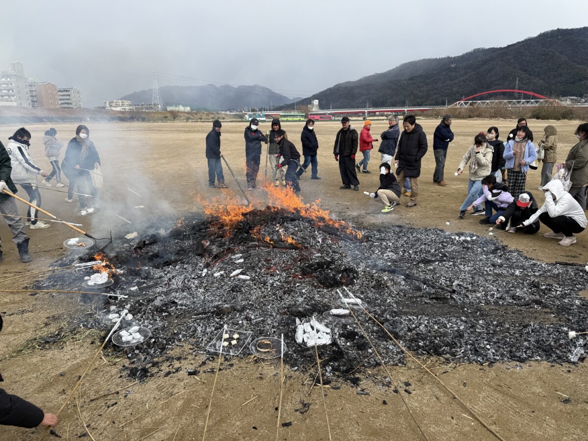 炭になったやぐらからの熱気を使ってお餅やイモ、マシュマロやパンを焼く子供から大人まで、全ての人が今年一年、健康に過ごせますようにと行われるとんど祭りは、これからも大切な文化として継承していくべきものだと強く感じました。
