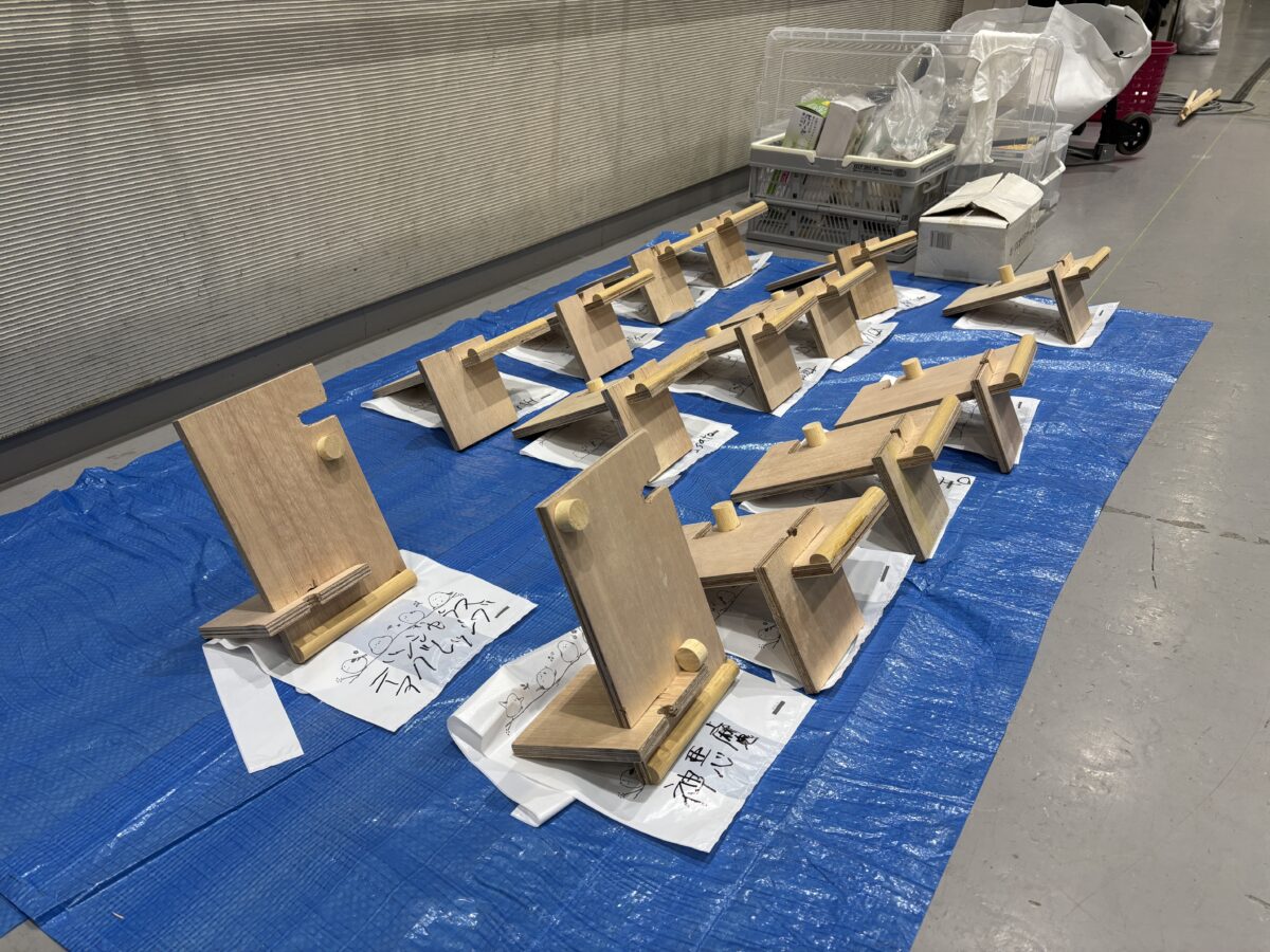 互いに切磋琢磨しあっている会社同士が協力して、高校生を中心に工務店という仕事や家づくりについての職業紹介を行ったり、実際に手を動かして木製スマホスタンドをつくってみようという内容で企画運営がなされました。