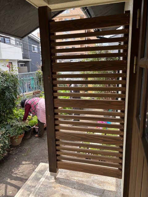 玄関横の目隠し塀。