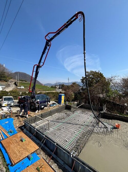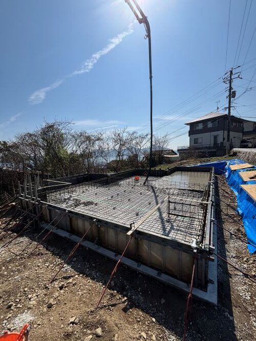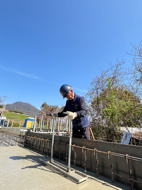 現場は、基礎ベース部のコンクリート打設作業が完了しました。