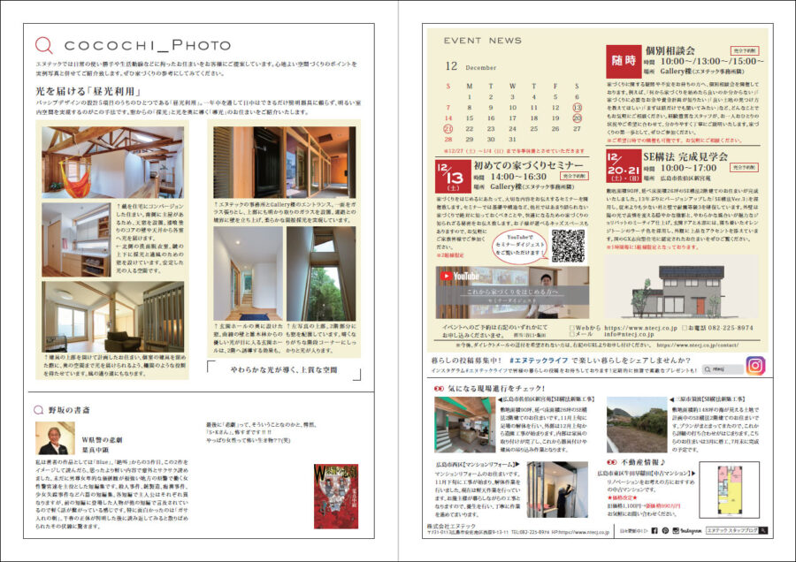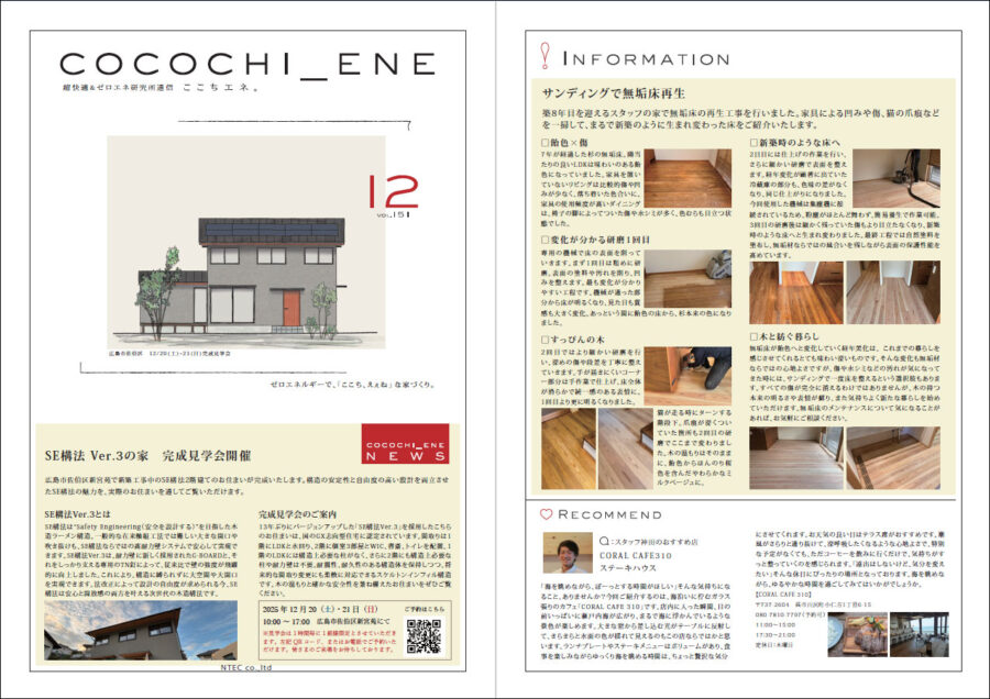 2025年12月号のニュースレターを掲載しました。 エヌテックのニュースレター「ここちエネ」では “快適”に関する様々な情報を多角的にお伝えしていきます。 また、毎月のイベントスケジュール等も掲載し 読み応えのある内容となっております。 ニュースレターの送付をご希望の方は、エヌテックまでお申しつけください。 こちらからダウンロードいただけます。 >>NL2025.12 過去の記事はこちらからどうぞ。 >>ニュースレター